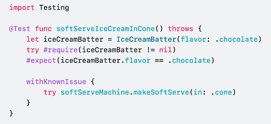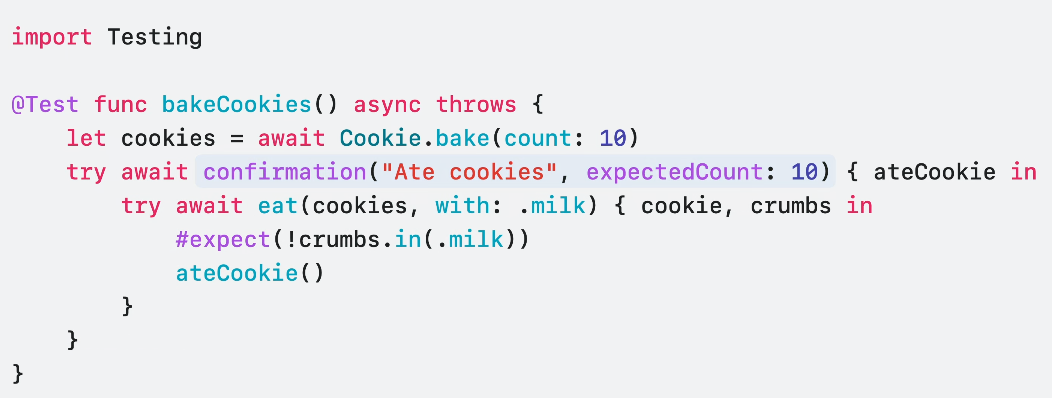 #expect(person.hadCoffe) #expect(teaTypes.count > 10) #expect(iceCreamToppings != nil)Expect 매크로로 복잡한 유효성 검사도 쉽게 해줄 수 있죠.