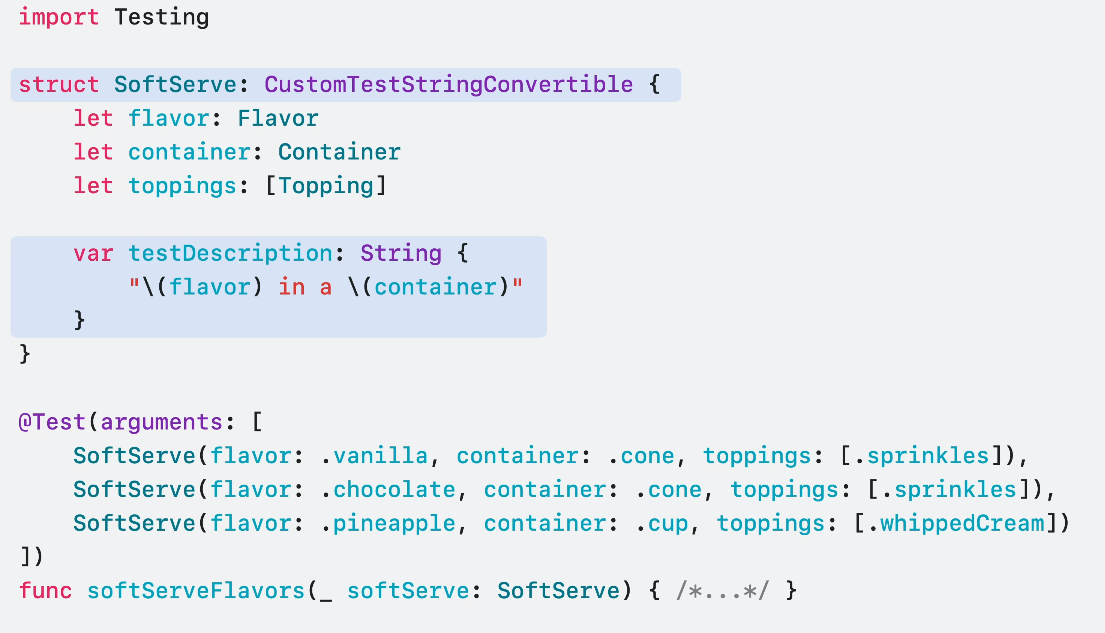 Swift Testing으로 다양한 인수를 사용하면 단일 테스트 함수를 쉽게 실행할 수 있어요.