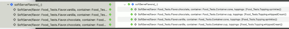 테스트 함수가 실행되면 Swift Testing은 이것들을 자동으로 인수당 하나씩 별도의 테스트 케이스로 분할해요.