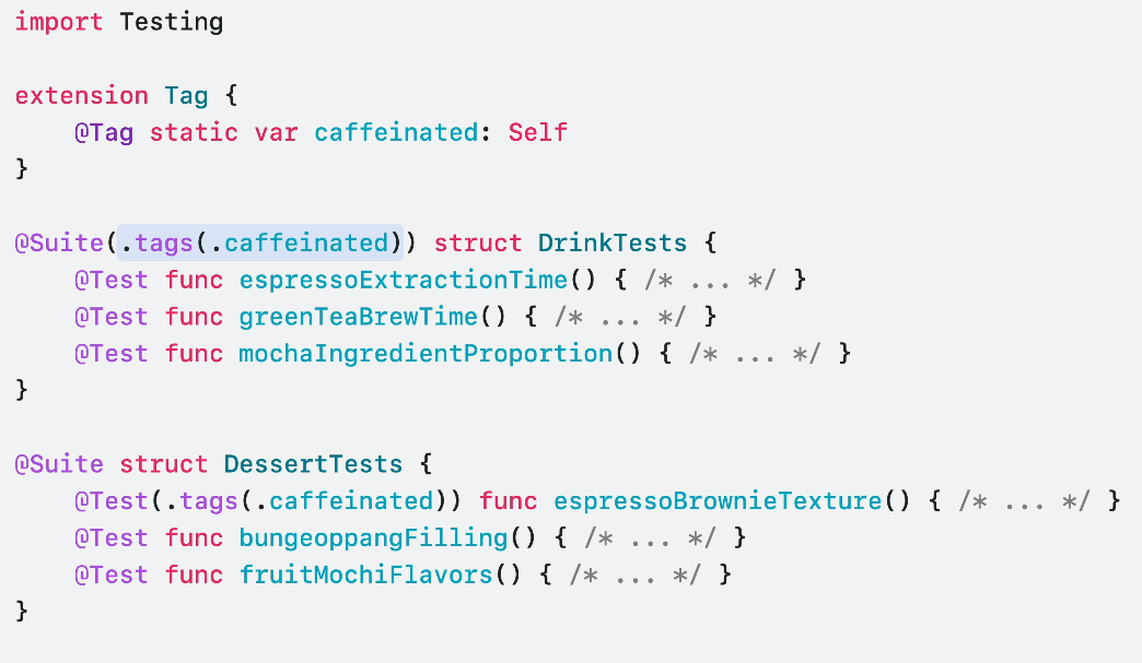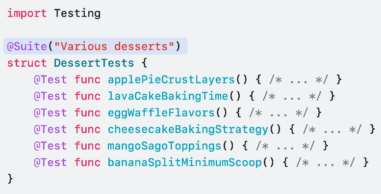 Swift Testing에선 이제 Suite에 다른 Suite를 포함해 더 유연한 테스트 구성을 제공합니다.
