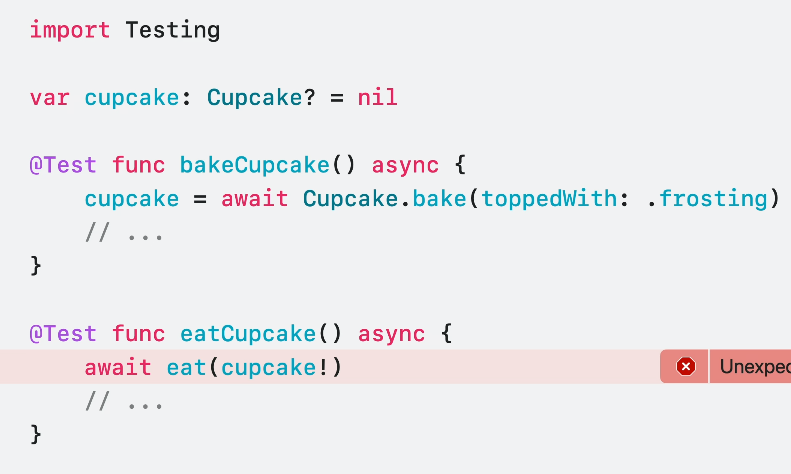 테스트 기능은 필요할때 메인 액터와 같은 전역 액터로 격리될 수 있어요.