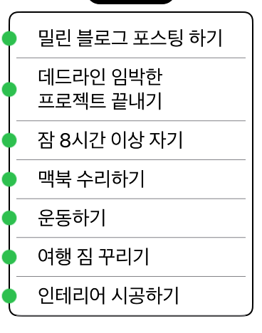 struct ContentView: View { @State var notes: [Note] = [ .init(content: "밀린 블로그 포스팅 하기"), .init(content: "데드라인 임박한 프로젝트 끝내기"), .init(content: "잠 8시간 이상 자기"), .init(content: "맥북 수리하기"), .init(content: "운동하기"), .init(content: "여행 짐 꾸리기"), .init(content: "인테리어 시공하기") ] var body: some View { ScrollView { ZStack { RoundedRectangle(cornerRadius: 12) .stroke( Color.black, lineWidth: 2 ) .padding(.horizontal, 10) VStack( alignment: .leading, spacing: 10 ) { Spacer() .frame(height: 10) ForEach(notes, id: \.id) { note in NoteItem(content: note.content) Rectangle() .fill(.gray) .frame(height: 1) .padding(.horizontal, 20) } } } .padding(.horizontal, 20) } } }이렇게 ZStack으로 먼저 아래에 테두리를 깔아주는것입니다.