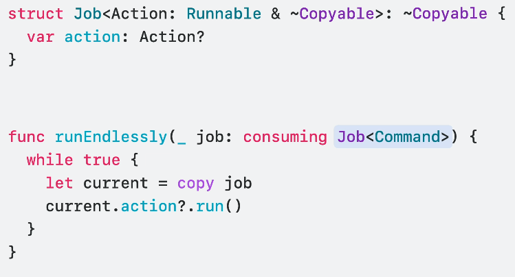 그렇기에 모든 곳에서 사용하고 싶은 니즈에 따라 Swift 6에서는 복사할 수 없는 제네릭을 사용할 수 있습니다!