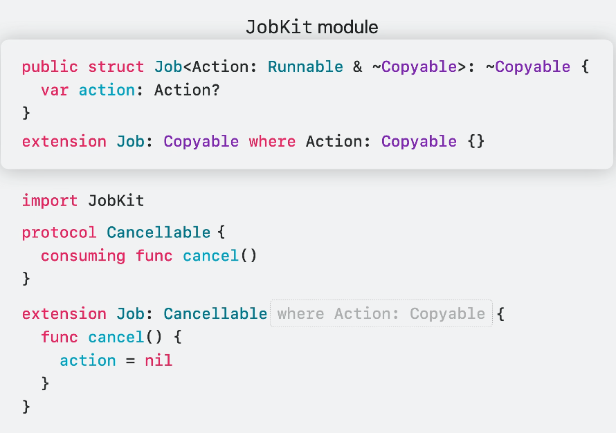 이제 Job은 Action이 Copyable이라고 가정하지 않고 Cancellable을 준수하게 됩니다.
