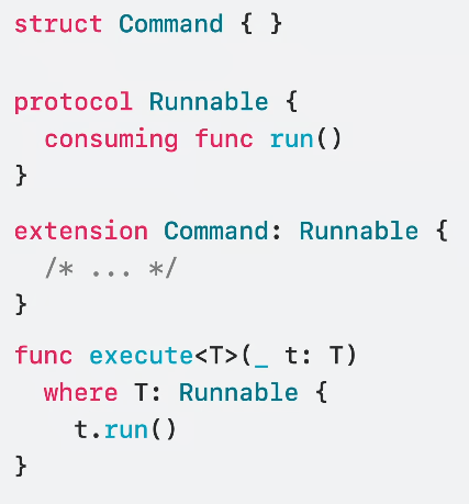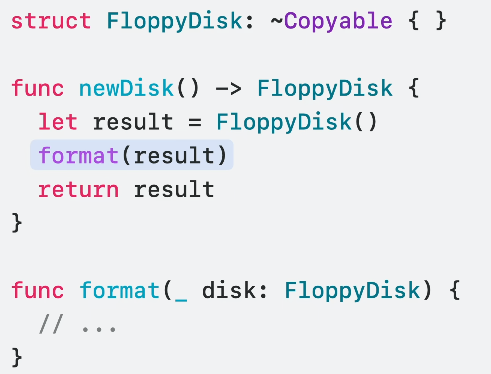이렇게 noncopyable을 활용하면 Swift는 동일한 조건에서 실행이 겹치거나 하는 등의 여러 에러 케이스를 보호해줄 수 있습니다.