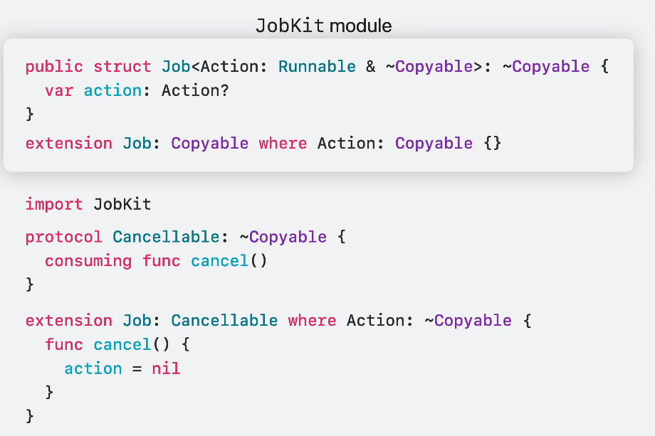 Job이 실제로 JobKit이라는 모듈의 일부라고 가정해볼께요.