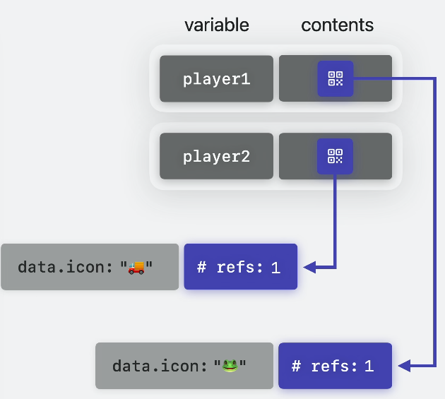 즉, player1의 컨텐츠는 해당 객체에 대한 자동 관리 참조가 됩니다.