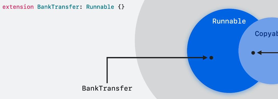 Runnable 프로토콜을 사용해 BankTransfer를 확장하면 해당 지점이 복사되는게 아니라 Runnable 내에서 이동합니다.