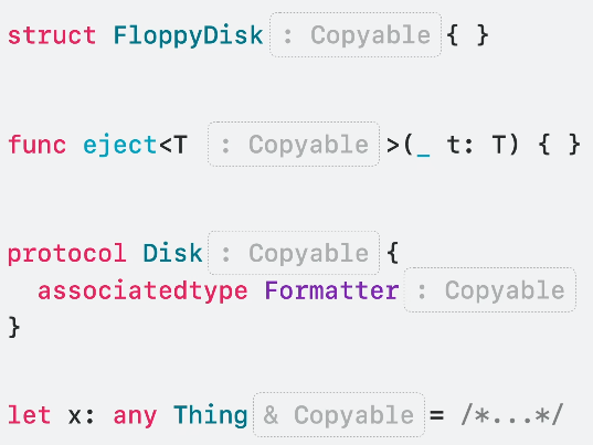 ~Copyable을 통해 덜 구체적으로 제약 조건을 확장할 수 있죠.