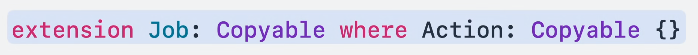 일반적으로 Action은 복사 가능하지 않을 수 있기에 적합성은 복사 가능한 Action에 대한 조건부로 기본적으로 적용됩니다.