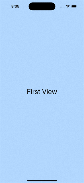 import SwiftUI struct ContentView: View { var body: some View { ZStack { Color.blue.opacity(0.3) Text("First View") .font(.largeTitle) } .ignoresSafeArea() .interactivePushDestination(destination: DestinationView()) } } struct DestinationView: View { var body: some View { ZStack { Color.green.opacity(0.3) Text("Second View") .font(.largeTitle) } .ignoresSafeArea() } }첫번째 뷰인 ContentView에서 단순히 interactivePushDestination 모디파이어를 붙여주고 destination에 전환시킬 뷰를 넣어주기만 하면 끝입니다.