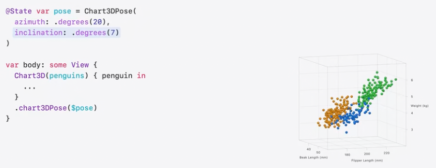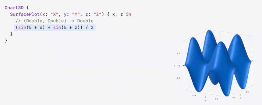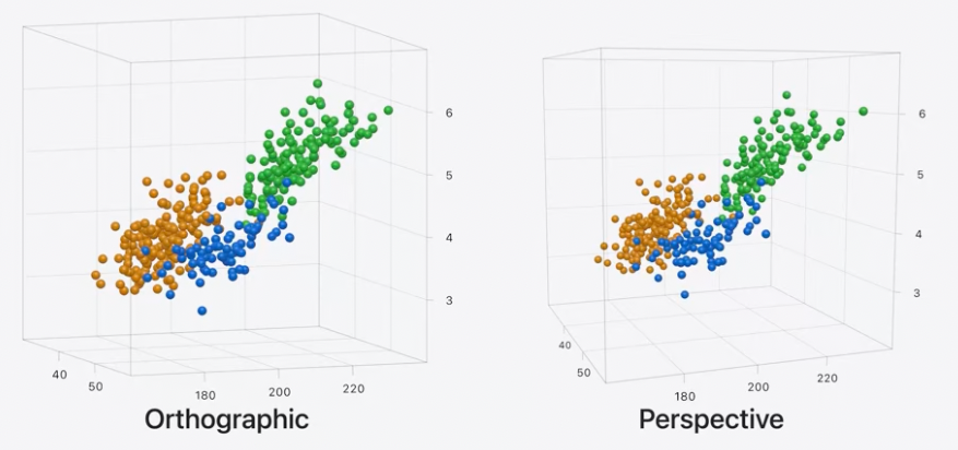 그런데 이제 iOS 26에서는 Swift Charts가 3D 차트를 지원해서 플롯을 다각화할 수 있습니다.