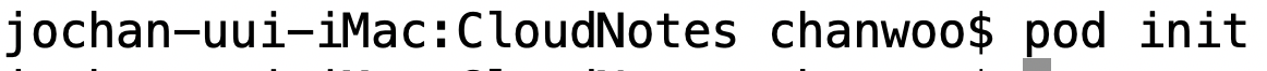 3. 프로젝트 경로에서 아래 명령어 입력 (Podfile 생성 명령어)