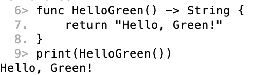 -. 함수 정의 키워드 : func 함수이름(매개변수...) -> 반환타입 {