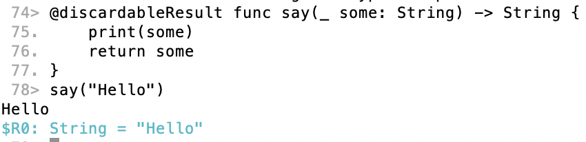반환값을 무시해도 된다는 @discardableResult 선언으로 사용됩니다.